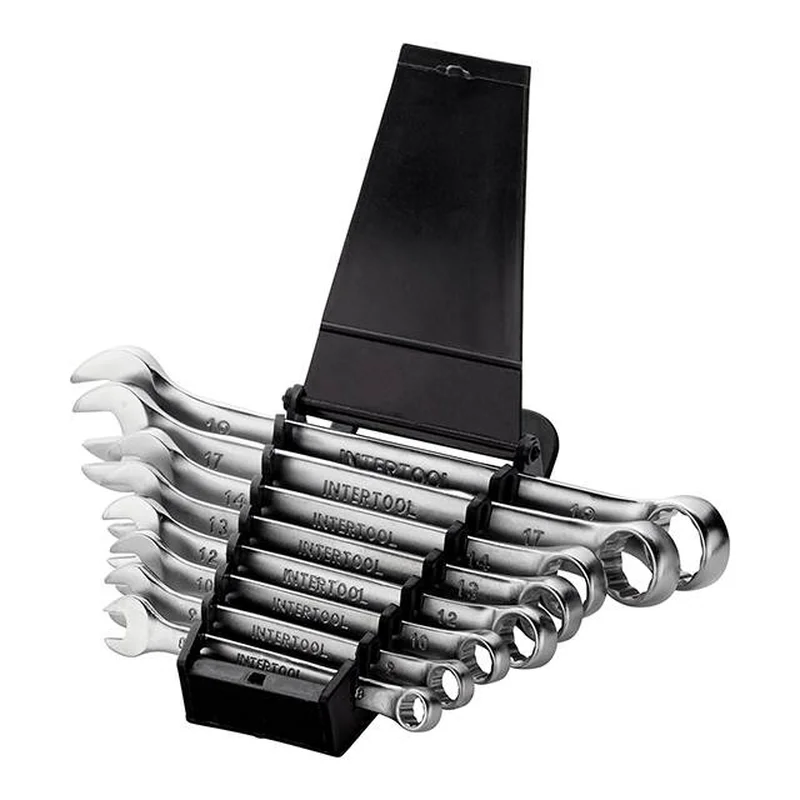 У набір INTERTOOL HT-1202 увійшли ріжково-накидні ключі, розмірами: 8; 9; 10; 12; 13; 14; 17; 19 мм. Це дозволяє обрати необхідний розмір під будь-які завдання для монтажу та демонтажу різьбових з'єднань гайок та болтів.