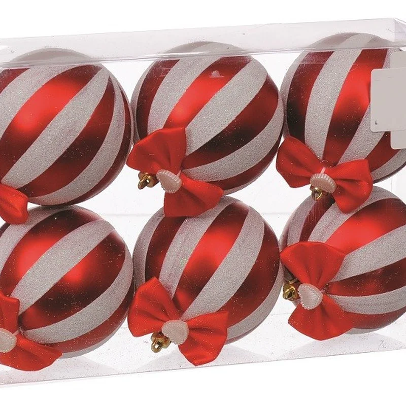 Набір кульок, 6 шт, 8 см, пластик, біло-червона смужка