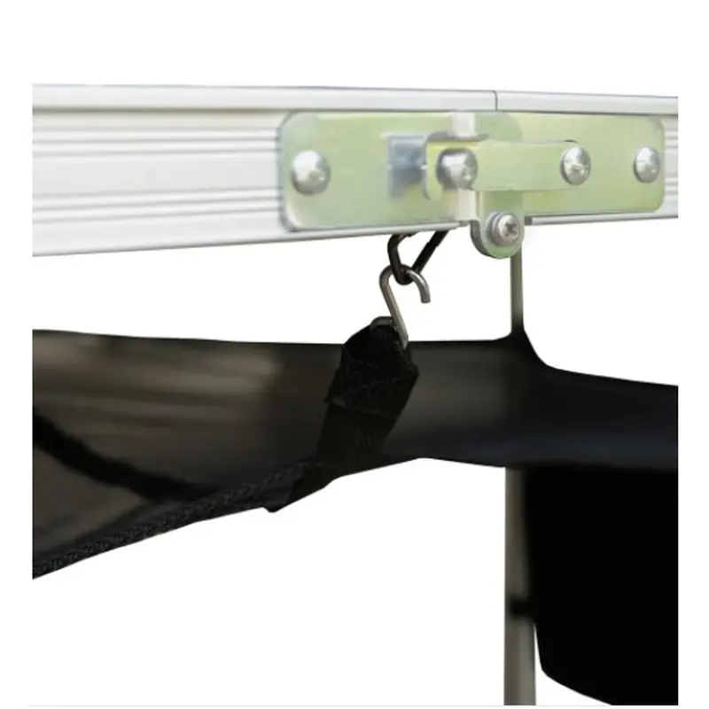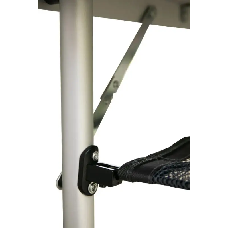 Стіл укомплектований широкою підвісною сітчастою полицею яка кріпитися під стільницею.