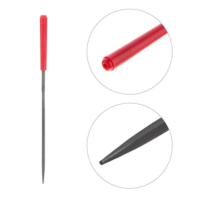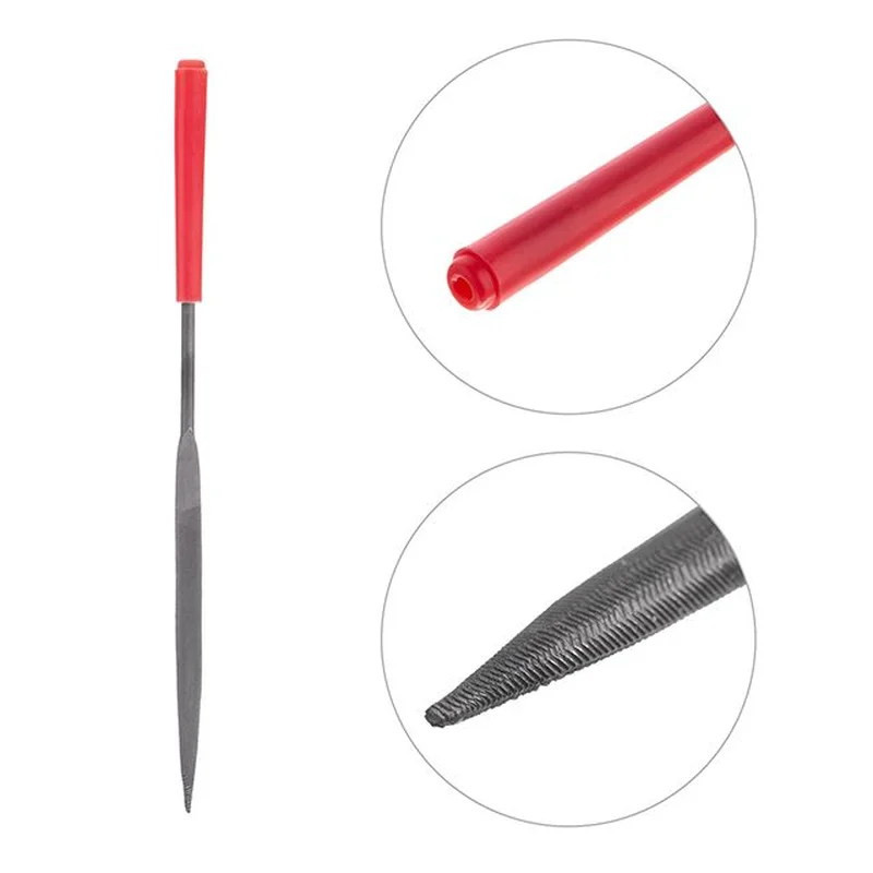 Надфілі виготовлені з високоякісної вуглецевої сталі, що надає високу міцність та зносостійкість. Алмазне напилення гарантує відмінну роботу та високі абразивні властивості. Ручки виконані із легкого пластику.