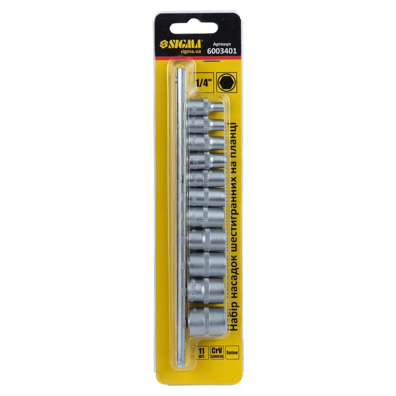 Набір насадок шестигранних 1/4" на планці 11шт CrV SIGMA (6003401)