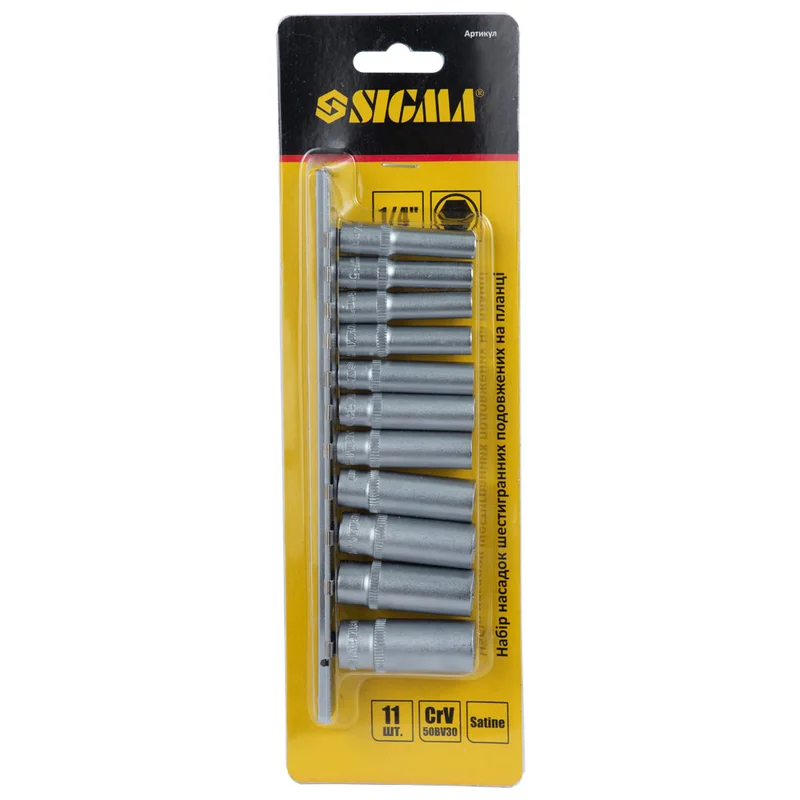 Набір насадок шестигранних подовжених 1/4" на планці 11шт CrV SIGMA (6003411)