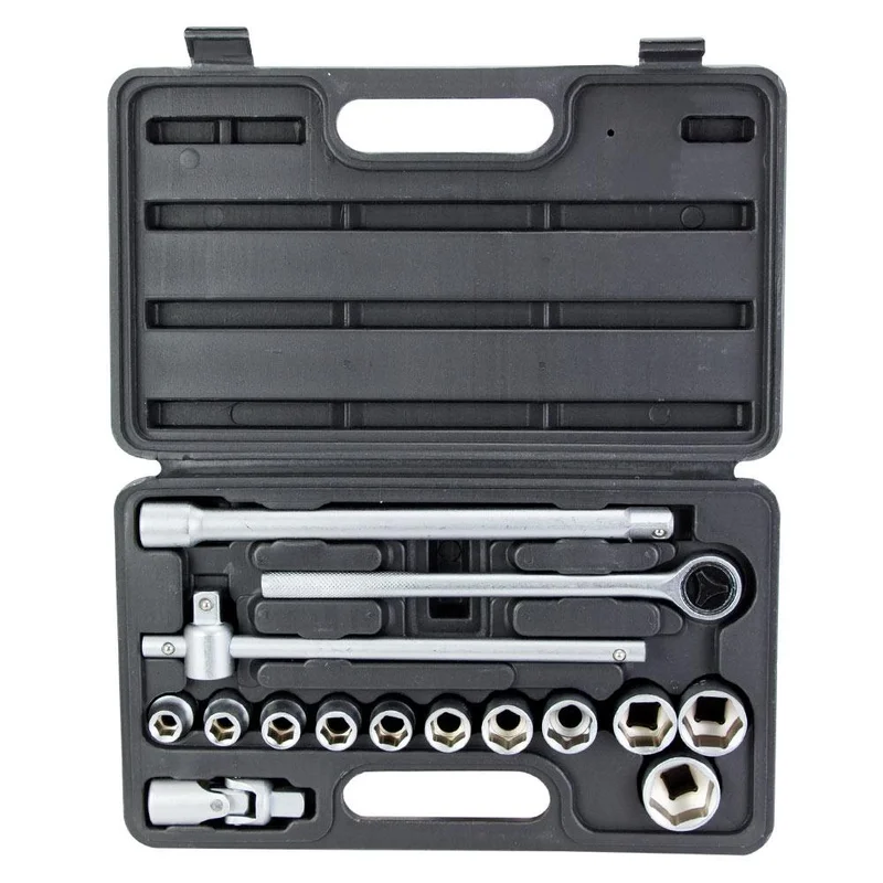 Набір насадок торцевих 1/2" + аксесуари 16шт (кейс) GRAD (6003125) призначений для роботи з різьбовими з'єднаннями при ремонті і обслуговуванні автомобілів. Інструменти виготовлені з хромванадієва стали. Поставляються в компактному пластмасовому кейсі.