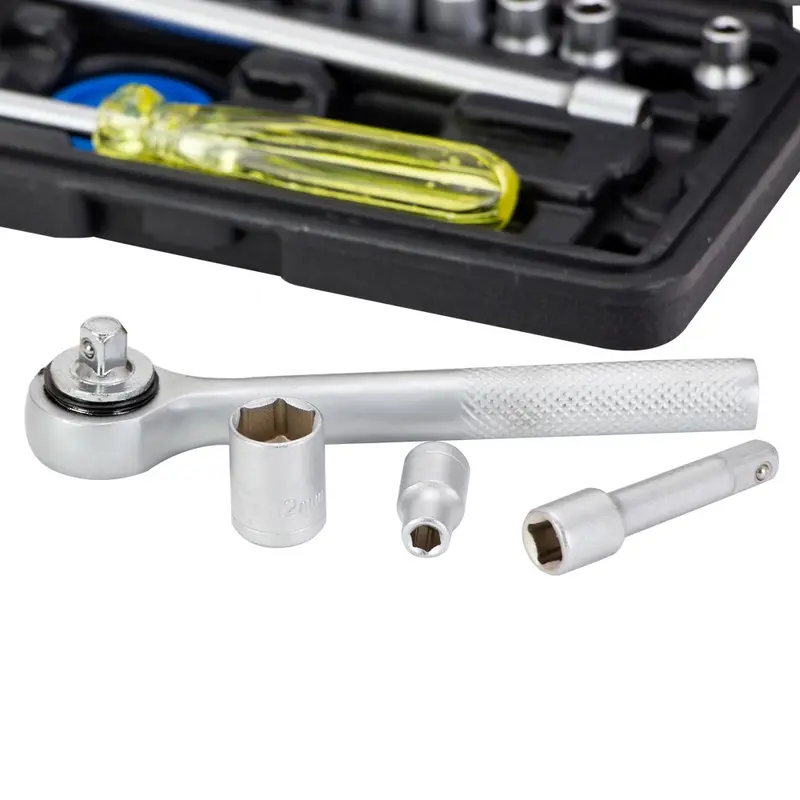 Набір насадок торцевих 1/4" в кейсі 16шт GRAD (6003045) призначений для роботи з різьбовими з'єднаннями при ремонті і обслуговуванні автомобілів. Інструменти виготовлені з хромванадієва стали. Поставляються в компактному пластмасовому кейсі.