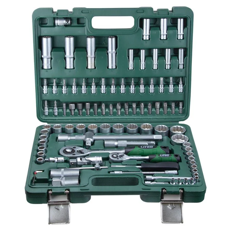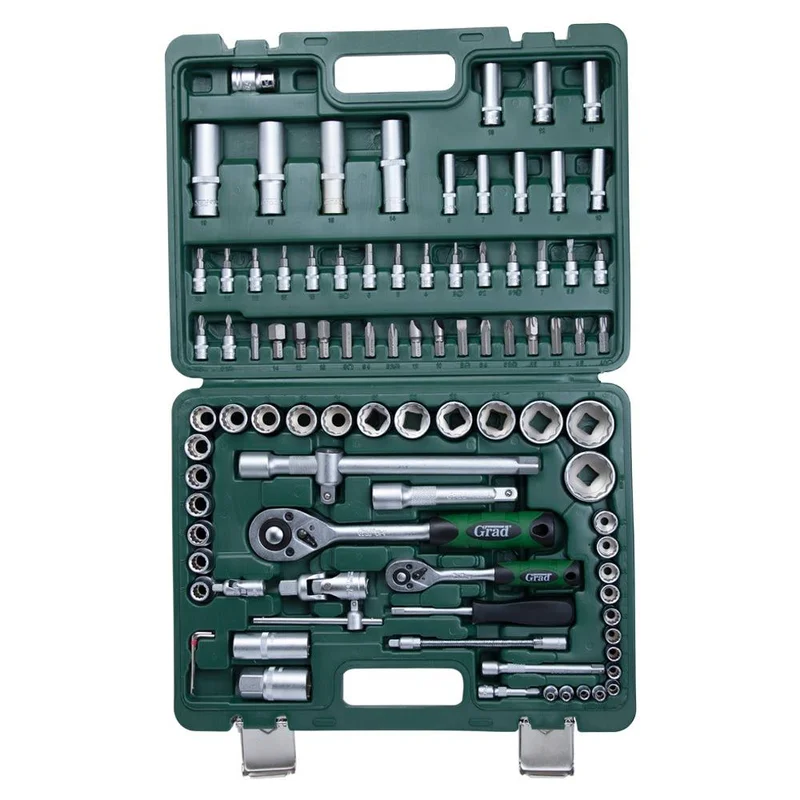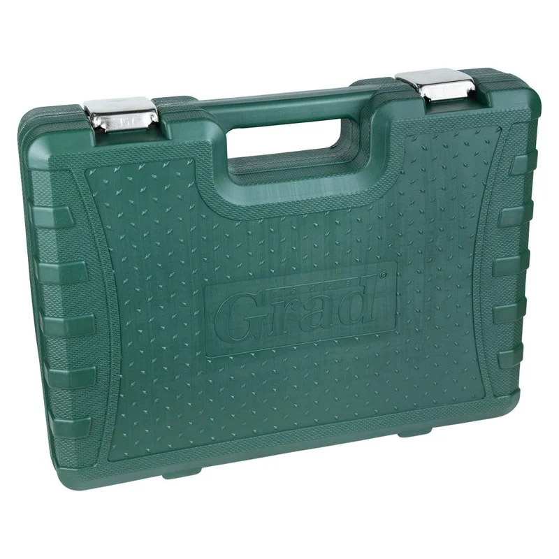 Набори GRAD - лінійка для побутового використання. Набори підходять як для виконання нескладного автомобільного ремонту, так і для побутового застосування. Інструменти виготовлені з міцної інструментальної сталі і мають тришарове покриття (Nickel X2 + Chrome). Для комфортного зберігання та транспортування, набори поставляються в кейсі, який виготовлений з міцного АБС-пластику з металевими замками.