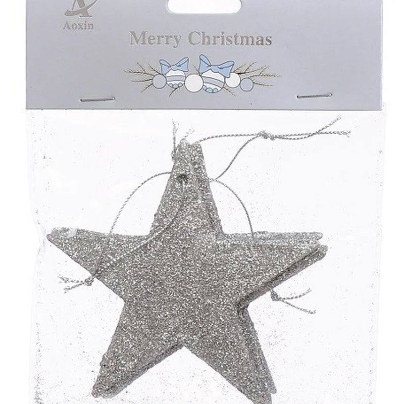 Набір новорічних прикрас 10 см, Зірка, 4 шт, пластик, срібний
