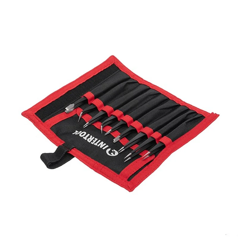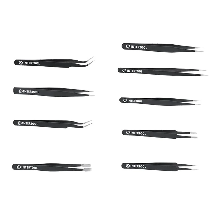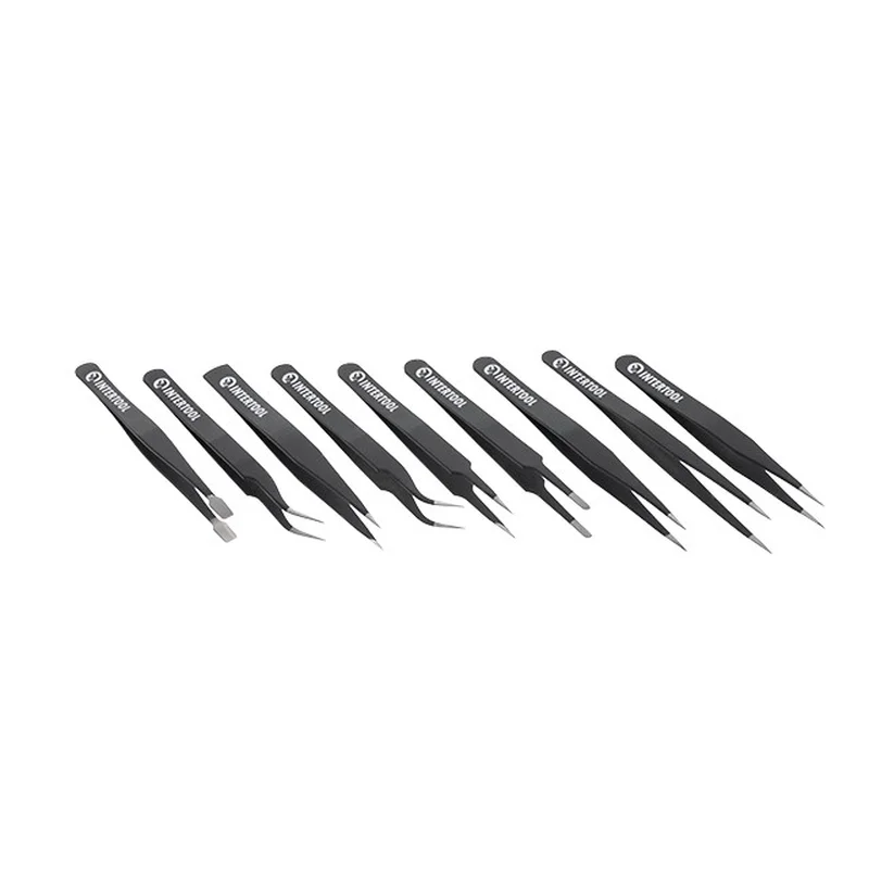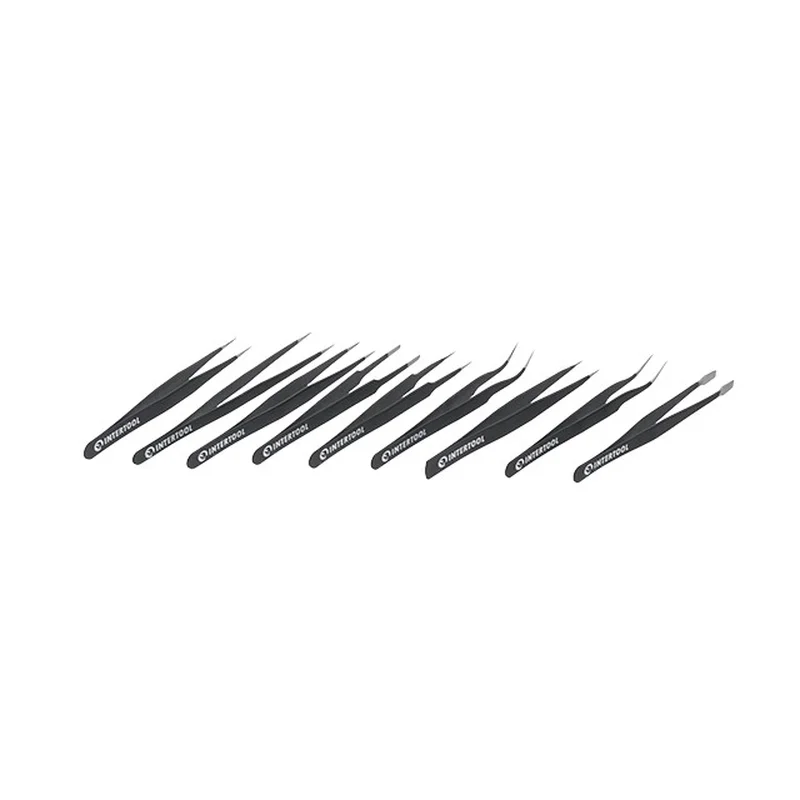 Набір пінцетів радіотехнічних 9 од., антистатичні, в чохлі INTERTOOL NT-6002