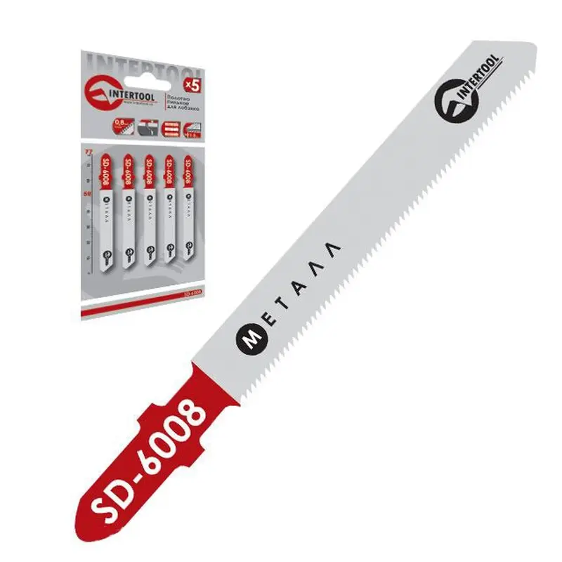 Набір полотен 5 од. для лобзика. Робоча довжина 50 мм, шаг зуба 0,8 мм, для роботи з тонколистовим та кольоровим металом. INTERTOOL SD-6008