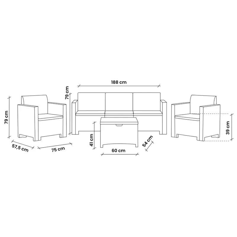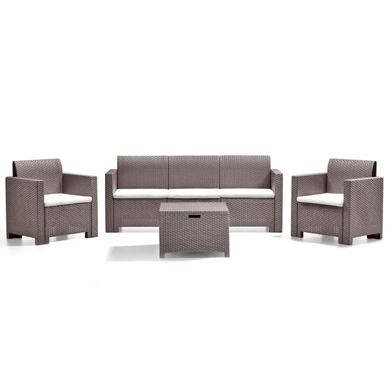 Комплект садових меблів BICA Nebraska 3 — це елегантне та практичне рішення для комфортного відпочинку на свіжому повітрі. У комплект входять два крісла, тримісний диван, п’ять м’яких подушок і місткий стіл-скриня об’ємом 132 л. Меблі виготовлені з міцного поліпропілену з імітацією плетіння ротанга, що забезпечує стійкість до погодних умов та легкий догляд. Подушки зі знімними бавовняними чохлами створюють високий рівень комфорту, а ергономічний дизайн і оптимальні розміри дозволяють організувати як сімейні посиденьки, так і прийом гостей на відкритому повітрі.Особливості У набір входять два зручних крісла, просторий тримісний диван, прямокутний стіл-скриня та п’ять м’яких подушок для сидіння; Садові меблі виготовлені з міцного поліпропілену з ефектом плетіння під ротанг, стійкого до вологи, ультрафіолету та перепадів температур; Подушки мають знімні чохли на блискавці зі 100% бавовни та наповнені поліуретаном, забезпечуючи м’якість і легкість у догляді; Великий стіл-скриня об’ємом 132 л виконує подвійну функцію — сервірувальну та для зберігання пледів, аксесуарів або дитячих іграшок; Легка збірка конструкції без інструментів робить монтаж швидким і зручним, а пакування в картонну коробку спрощує транспортування; Меблі розраховані на комфортне розміщення до 5 осіб і придатні для цілорічного використання при температурі від 0 до +40 °C;*Реальний колір товару може дещо відрізнятися від зразків, представлених на сайті, залежно від технічних налаштувань вашого екрану, а також, зважаючи на особливості матеріалу, відтінок може змінюватися залежно від освітлення.