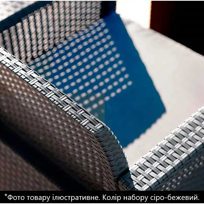 Меблі не піддаються іржавінню та гниттю завдяки неметалічній рамі. Матеріал комплекту включає водонепроникну обробку, а також стійкий до УФ-випромінювання — колір не вигорає й не тьмяніє. Набір садових меблів BICA Venezia 3 захоплює витонченою обробкою, стилізованою під плетений ротанг, та міцною і легкою у догляді конструкцією із пластику, що має високу зносостійкість.