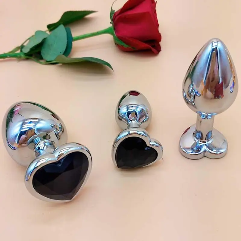 Набір трьох металевих анальних пробок із сердечком різного розміру з кольоровими кристалами.Розмір і вага:- маленька (S) діаметр - 2,8 см. (окружність - 8,48 см.), висота - 7,2 см, вага: 50 грам;- середня (M) діаметр - 3,4 см. (окружність - 10,68 см.), висота - 8,3 см., вага: 90 грам;- велика (L) діаметр - 4,2 см. (окружність - 13,19 см.), висота - 9,0 см, вага: 160 грам.Матеріал: метал, скло.Колір: чорний