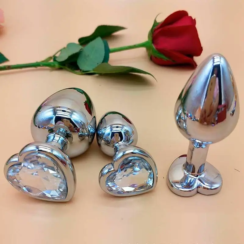 Набір трьох металевих анальних пробок із сердечком різного розміру з кольоровими кристалами.Розмір і вага:- маленька (S) діаметр - 2,8 см. (окружність - 8,48 см.), висота - 7,2 см, вага: 50 грам;- середня (M) діаметр - 3,4 см. (окружність - 10,68 см.), висота - 8,3 см., вага: 90 грам;- велика (L) діаметр - 4,2 см. (окружність - 13,19 см.), висота - 9,0 см, вага: 160 грам.Матеріал: метал, скло.