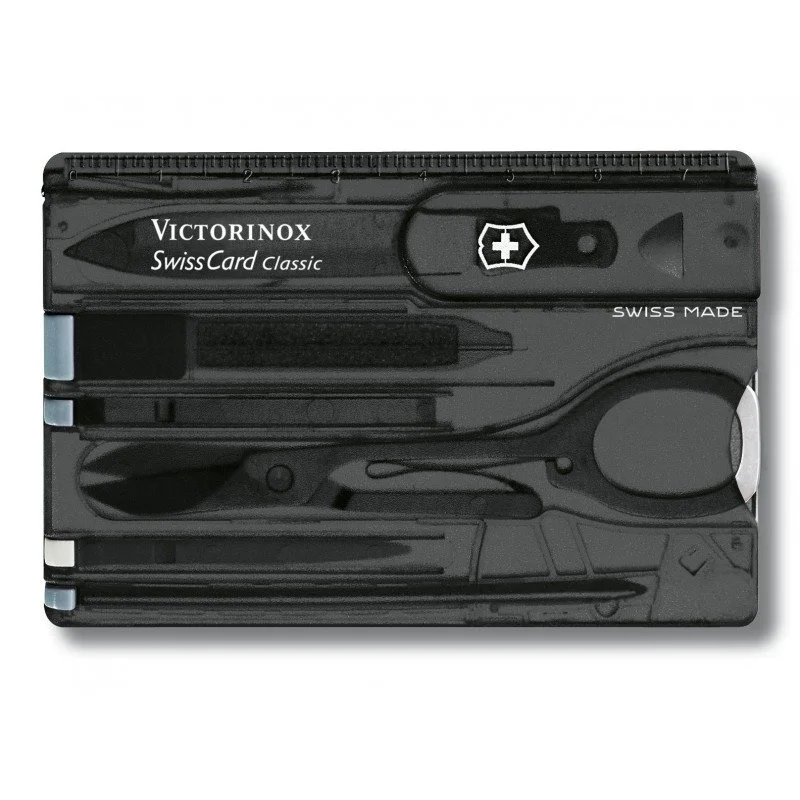 Швейцарська карта SWISS CARD 82х54х4мм/10 функцій/чорний напівпрозорий корпус/ножиці/ручка (блістер) Victorinox 0.7133.T3B1 Швейцарія