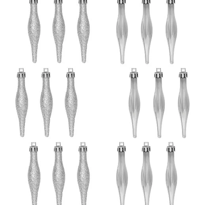 Набір ялинкових прикрас, 9,5 см, Бурулька, 18 шт, пластик, колір сріблястий