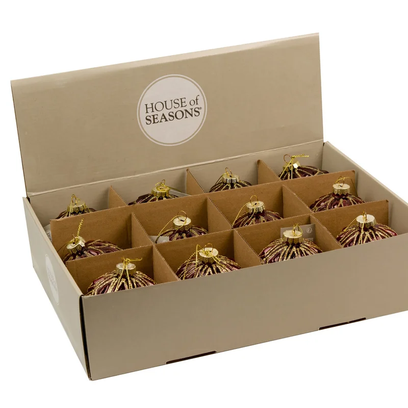 Набір ялинкових скляних кульок з візерунком "House of Seasons" 12 шт, Ø 8 см в ас-ті червоні 3 види