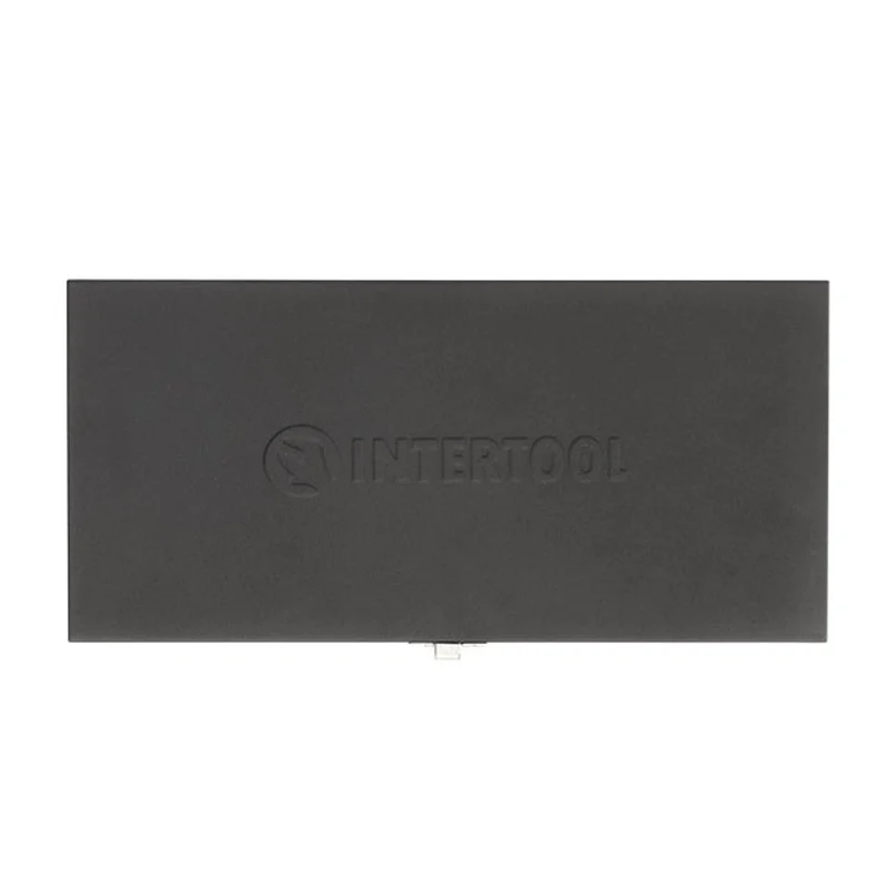 Весь набір поміщений у міцний металевий кейс, який закривається металевим замком. Його зручно транспортувати та зберігати, всі насадки розміщені у персональних маркованих відділеннях – ви швидко знайдете необхідну біту.