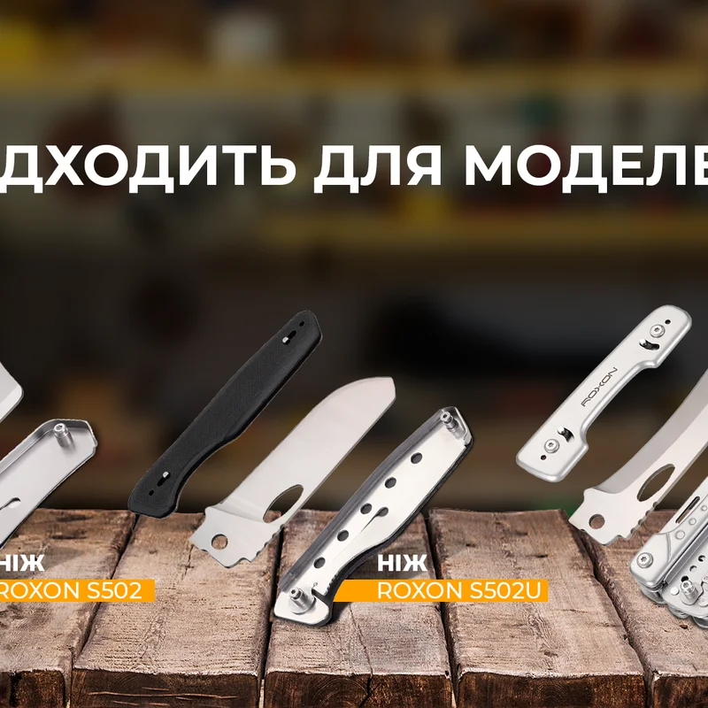 - клинки слугують заміною основному лезу в мультитулі Roxon S802, ножах Roxon S502 та S502U;