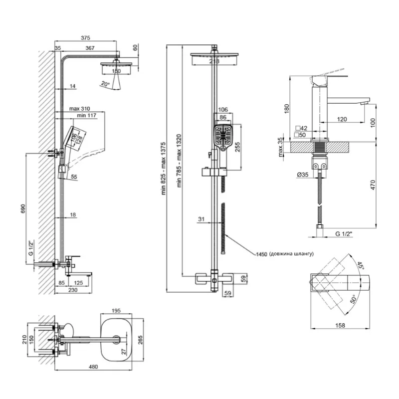 Набір змішувачів для ванни Lidz Kubis 10 30 105А+001F Black
