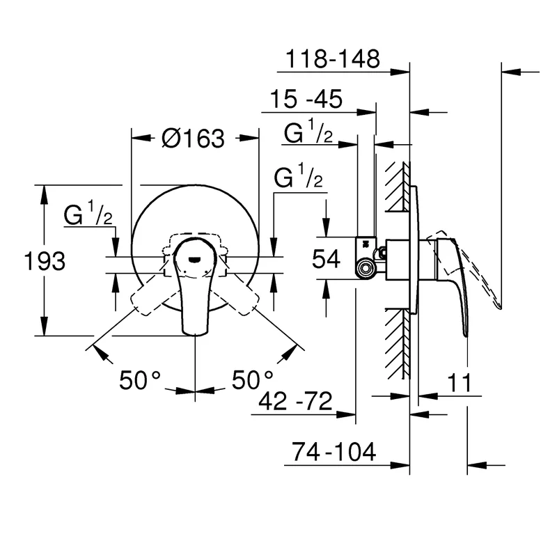 Набор для душа с верхним душем Grohe Eurosmart UA33556003 (33556003+28576000+27541001) (UA33556003)