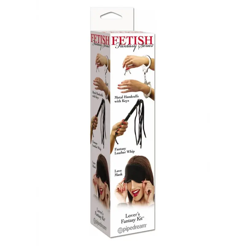 З набором Lover's Fantasy Kit від Pipedream Products неможливо нудьгувати. Розважайтеся і отримуйте задоволення, домінуючи або підкоряючись. У наборі Ви знайдете універсальні наручники з міцного металу, шкіряний батіг (довжина 42 см) і стильну маску на очі.
