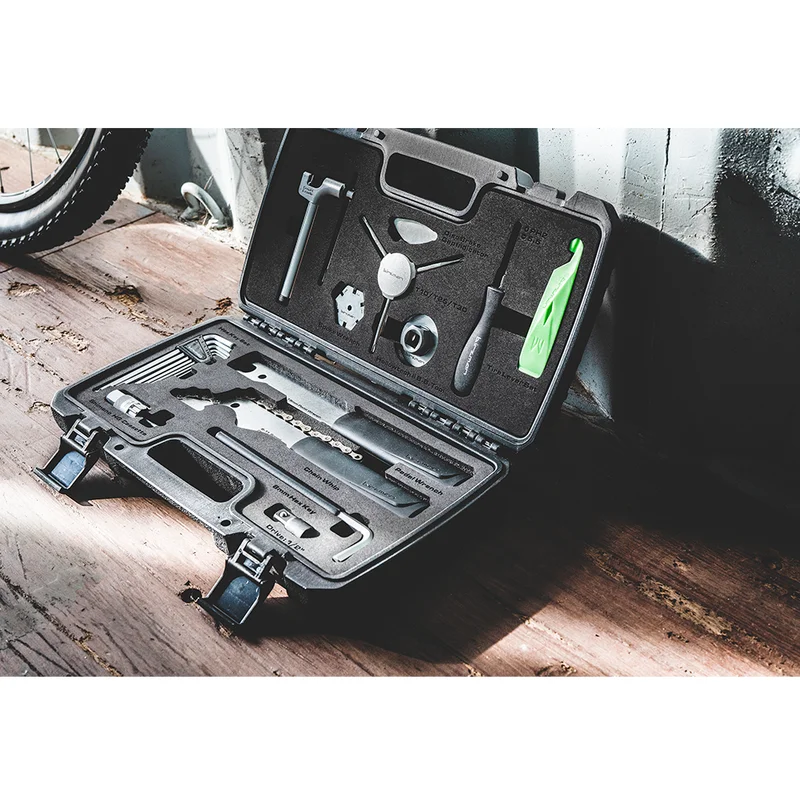 «Данный комплект выглядит наиболее профессионально, каждый из инструментов уложен в карман из пенопласта в жестком пластиковом футляре и имеет свою подпись. Тринадцать предметов (включает более 20 инструментов) - это большая часть того что требуется для сборки велосипеда».