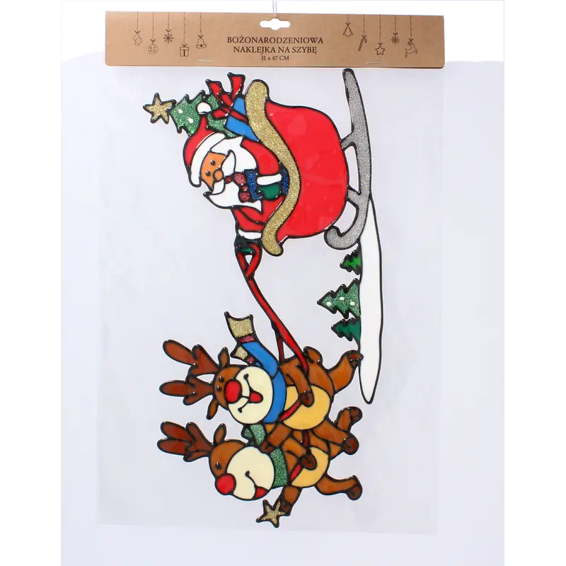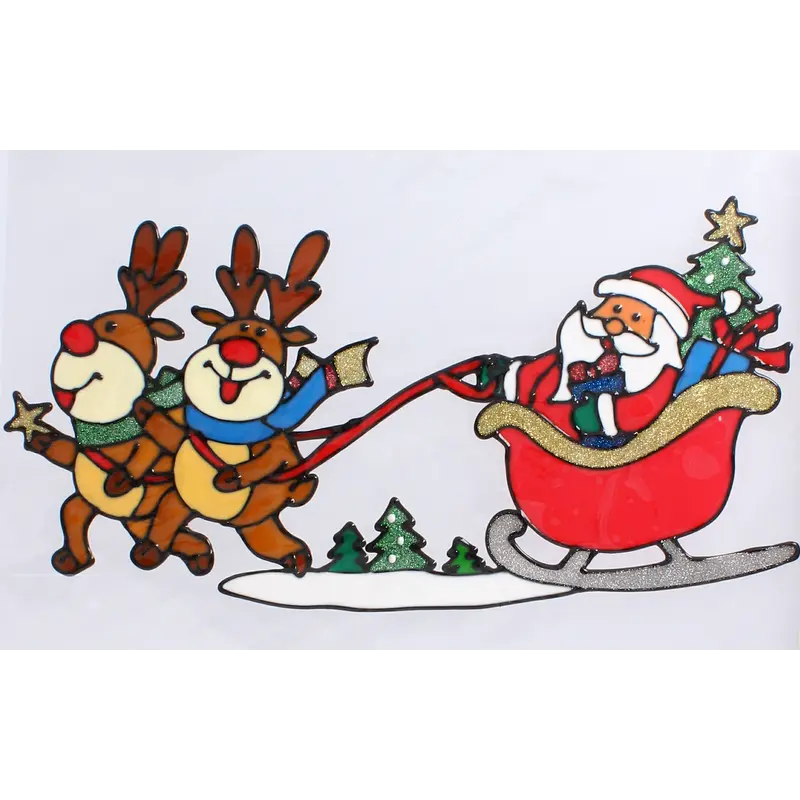 Коли наближаються різдвяні свята — новорічного декору багато не буває!Декоративні двосторонні наліпки — це чудове рішення, якщо бажаєте, щоб різдвяна атмосфера завжди супроводжувала вас у святковий період.Достатньо лише наклеїти яскраву прикрасу на обрану гладку поверхню, і два веселих оленя, що завзято везуть Санту з подарунками, випромінюватимуть зимовий настрій навколо. Особливо вдало наліпка виглядатиме на скляній та дзеркальній поверхні.При потраплянні світла прикраса заграє сяючими переливами завдяки блискіткам, якими вона покрита — казковий ефект забезпечено!*Реальний колір товару може дещо відрізнятися від зразків представлених на сайті залежно від технічних налаштувань Вашого екрану, а також, зважаючи на особливості матеріалу, відтінок товару може змінюватися залежно від освітлення.