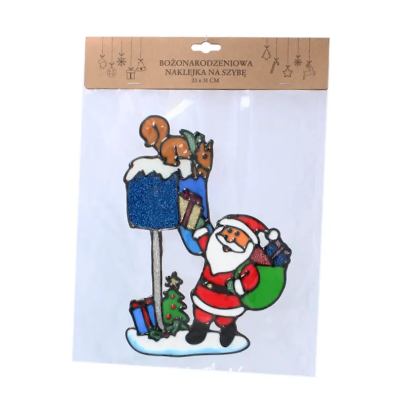 Коли наближаються різдвяні свята — новорічного декору багато не буває! Новорічні декоративні двосторонні наліпки — це чудове рішення, якщо бажаєте, щоб різдвяна атмосфера завжди супроводжувала вас у святковий період. Достатньо лише наклеїти прикрасу на обрану гладку поверхню, і добрий Санта, що роздає подаруночки, випромінюватиме зимовий настрій навколо. Особливо вдало наліпка виглядатиме на скляній та дзеркальній поверхні.При потраплянні світла прикраса заграє сяючими переливами завдяки блискіткам, якими вона покрита — казковий ефект забезпечено! *Реальний колір товару може дещо відрізнятися від зразків представлених на сайті залежно від технічних налаштувань Вашого екрану, а також, зважаючи на особливості матеріалу, відтінок товару може змінюватися залежно від освітлення.