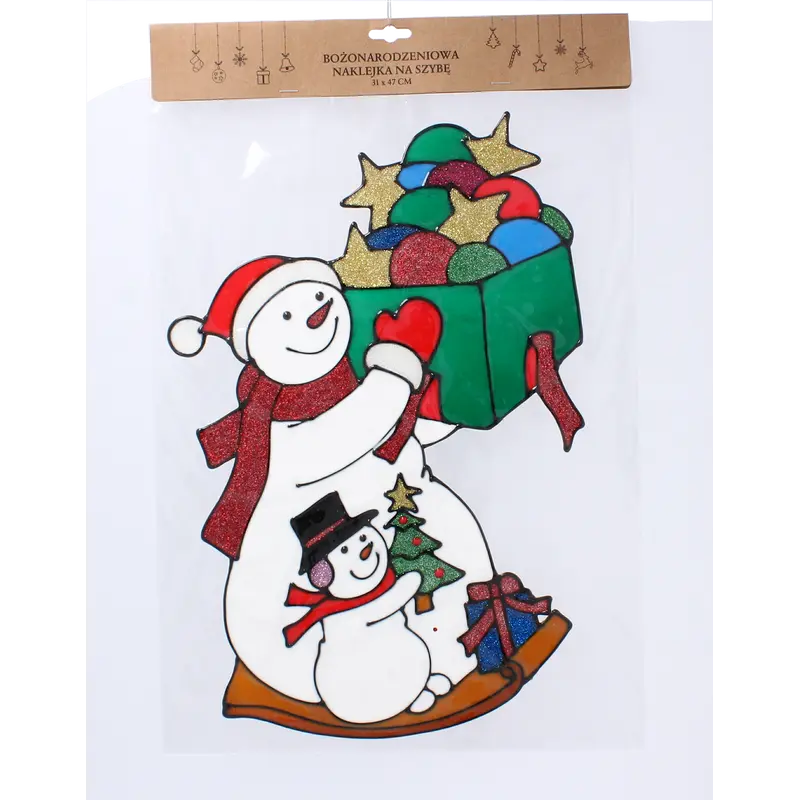Наклейка новорічна "Сніговички з подарунками" Chomik, 31х47 см