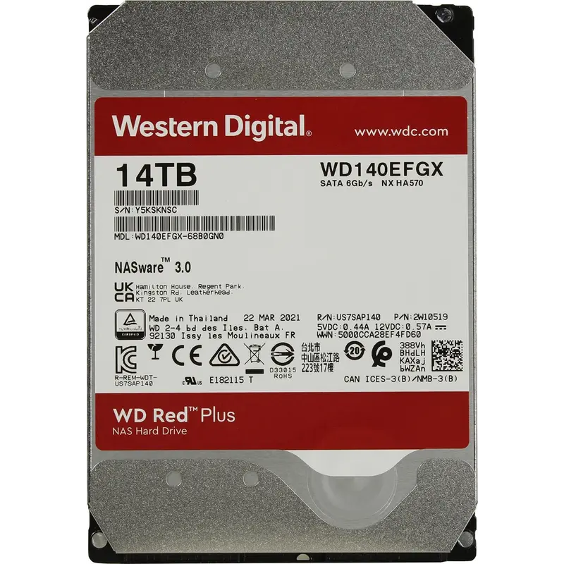 Накопичувач HDD SATA 14.0TB WD Red Plus 7200rpm 512MB (WD140EFGX)