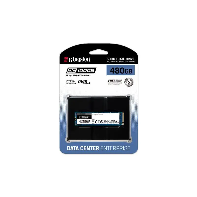 Твердотільний накопичувач SSD класу центрів обробки даних для корпоративних застосунків. Оптимізований завантажувальний диск для використання в серверному середовищі. Інтерфейс M.2 PCIe NVMe Gen3 x4. До 3200МБ/с для операцій читання, 565МБ/с для операцій запису. Серійний номер: SEDC1000BM8/480G. Накопичувач DC1000B компанії Kingston для центрів оброблення даних є високопродуктивним твердотільним накопичувачем SSD зі специфікацією NVMe і стандартом PCIe M.2 (2280), оснащений новітнім інтерфейсом PCIe Gen 3.0 x 4 з 64-шаровою пам’яттю 3D TLC NAND. Накопичувач DC1000B представляє для центрів оброблення даних економічне рішення щодо завантажувальних дисків, забезпечуючи впевненість, що вони купують твердотільні накопичувачі, призначені для використання в серверному середовищі. Накопичувач DC1000B ідеально підходить для використання в стійкових серверах великого об’єму як внутрішній завантажувальний диск, а також для використання в спеціалізованих системах, для яких потрібен високопродуктивний твердотільний накопичувач SSD M. 2, оснащений функцією вбудованого захисту від втрати живлення (PLP).