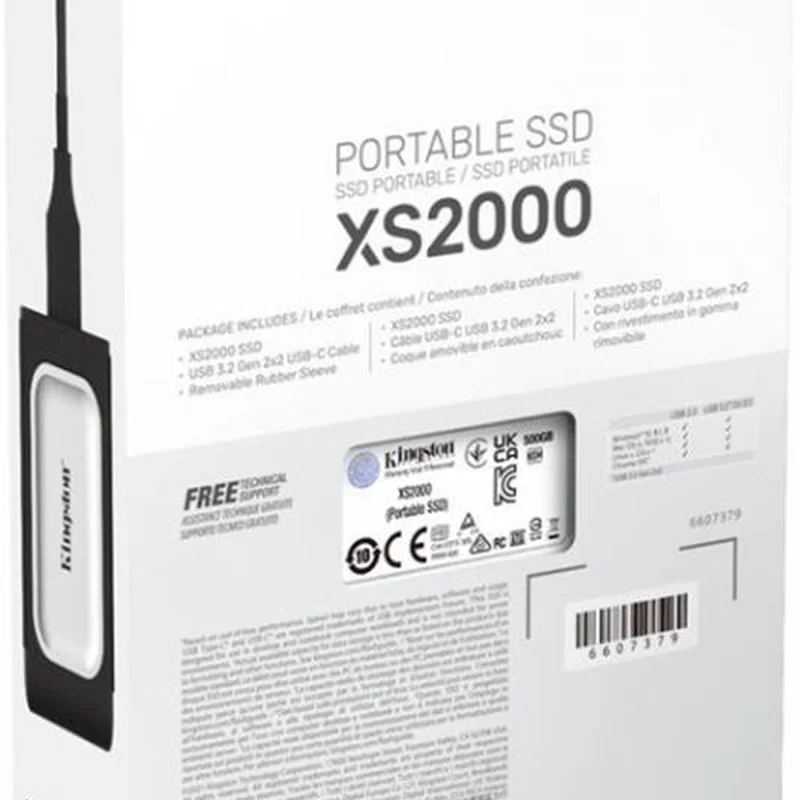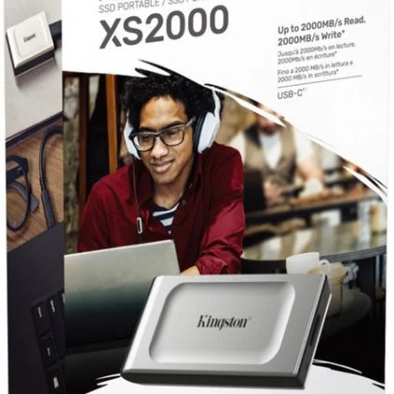 Портативний твердотільний накопичувач XS2000 компанії Kingston забезпечує швидкості USB 3.2 Gen 2x2 для досягнення нового рівня продуктивності в компактному зовнішньому накопичувачі. Завдяки високій швидкості передачі даних (до 2000 МБ/с) XS2000 підвищує продуктивність, не створюючи перешкод для роботи. XS2000 – це високошвидкісний варіант сховища ємністю до 2 ТБ, який дозволяє вивантажувати і редагувати зображення з високою роздільною здатністю, відеофайли формату 8K і документи великого розміру в одну мить. Накопичувач спроектований з розрахунком на майбутні вимоги до зберігання даних і спочатку сумісний з більшістю пристроїв. Він підключається за допомогою інтерфейсу USB Type-C, забезпечуючи творцям контенту можливість доступу до своїх даних на будь-якому ПК або мобільному пристрої. Незалежно від того, чи працюєте ви, відпочиваєте або реалізуєте проект своєї мрії, XS2000, що включає знімний міцний чохол і має клас захисту IP55 від води та пилу, стане ідеальним супутником для фотосесій на природі або під час ваших пригод. Швидкості до 2000 МБ/с стандарту USB 3.2 Gen 2x2 Ємність до 2 ТБ Компактний форм-фактор кишенькового розміру Клас захисту IP55, знімний гумовий чохол Портативність завдяки невеликому розміру Компактний і легкий форм-фактор для зручного зберігання даних в дорозі. Продуктивність USB 3.2 Gen 2x2 Найвищі в галузі швидкості читання/запису: до 2000 МБ/с. Висока швидкість і ємність До 2 ТБ для підтримки зображень з високою роздільною здатністю, відеофайлів формату 8K і документів великого розміру. Довговічність Протестований на водонепроникність, пилонепроникність і ударостійкість з вхідним в комплект гумовим чохлом.