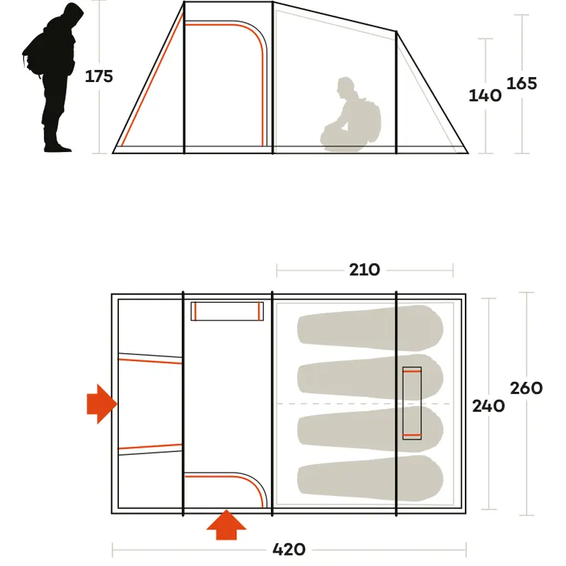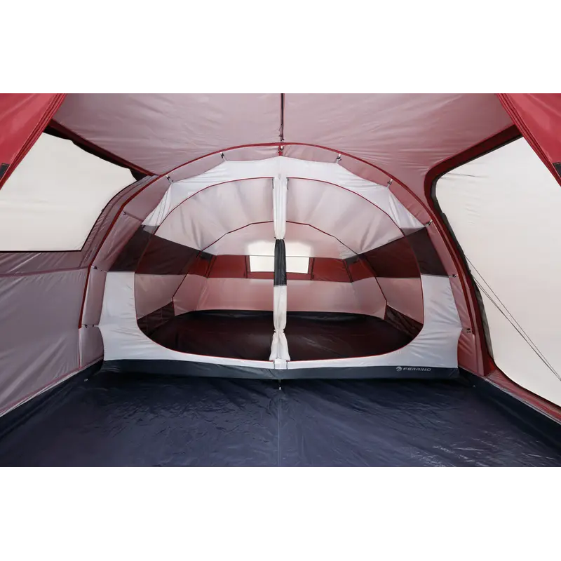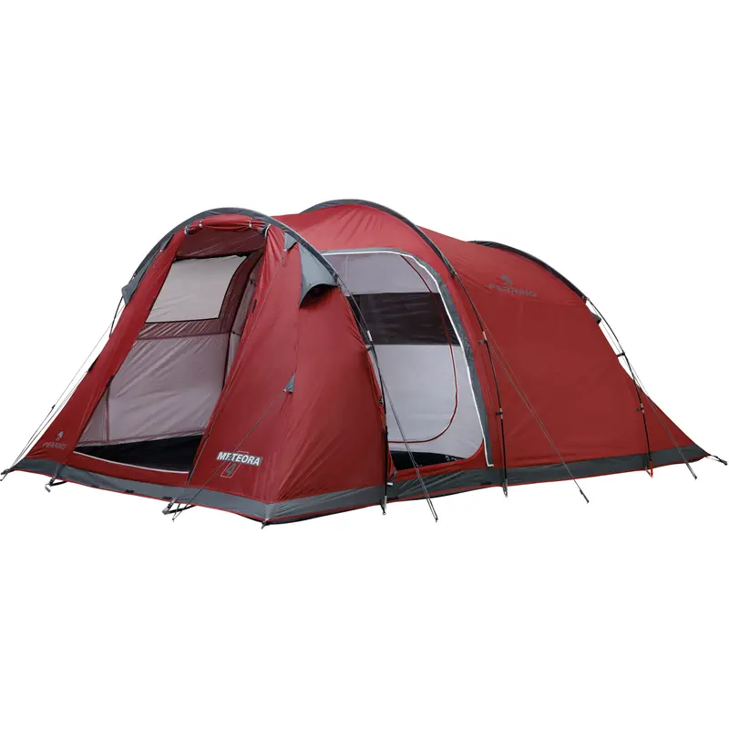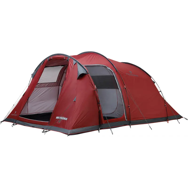 Намет чотиримісний Ferrino Meteora 4 Bordeaux (99124NMM) - сімейний тунельний намет із двома входами, просторим тамбуром із вшитою підлогою та спальнею зі знімною перегородкою. Москітна сітка на бічних вхідних дверях гарантує захист від настирливих комах. Система вентиляції Air Ventilation System забезпечує постійну циркуляцію повітря, а також позбавляє утворення конденсату. Панорамне бічне вікно наповнює внутрішній простір світлом. Висота тамбура 175 см дозволяє стояти на повний зріст.