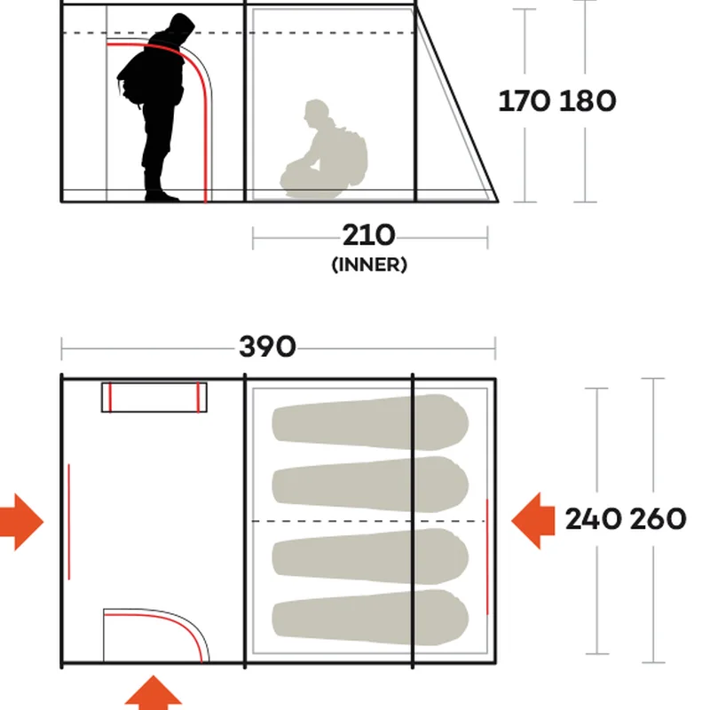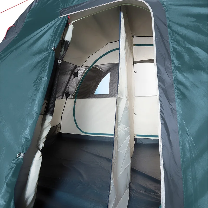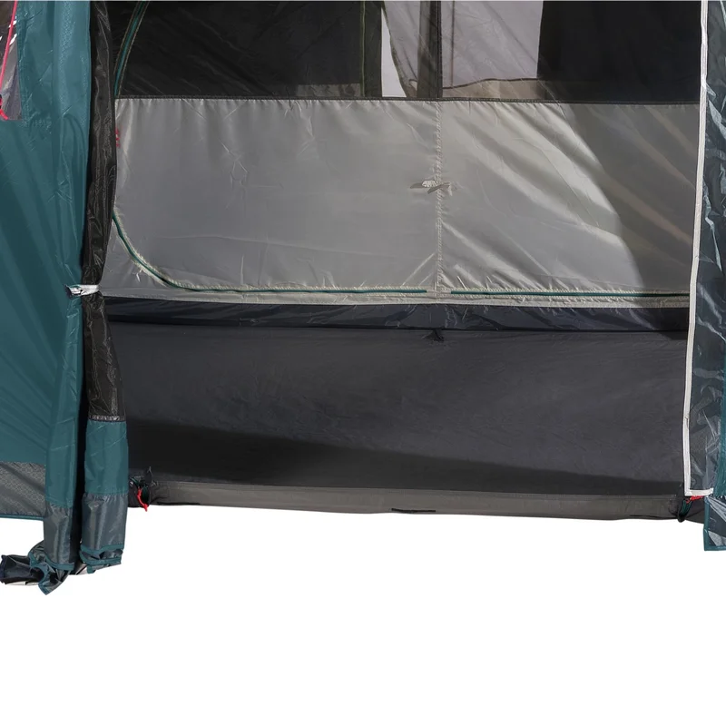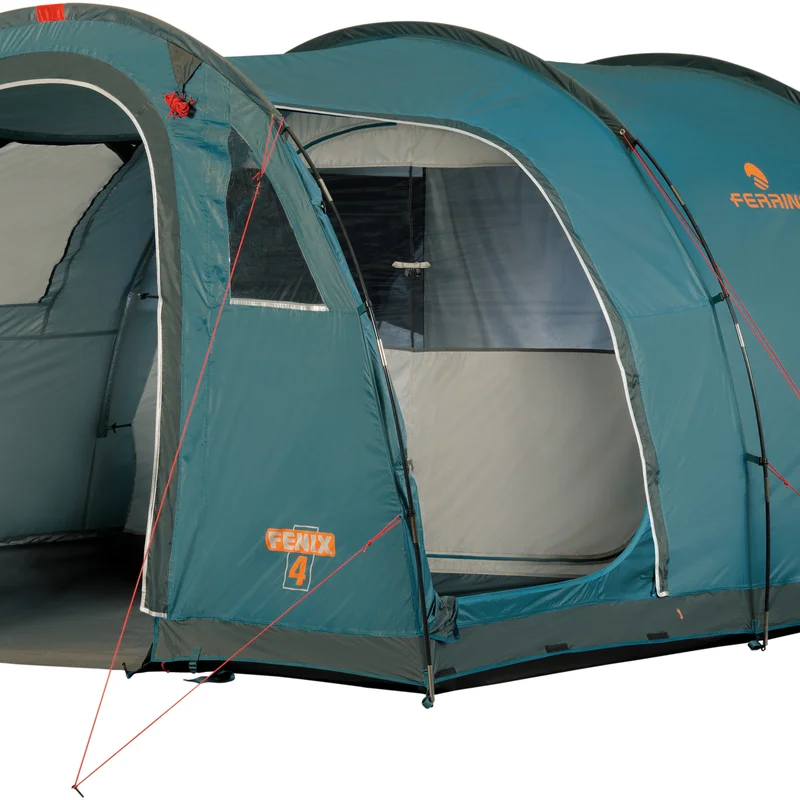 Намет чотиримісний Ferrino Fenix 4 Petrol (91192MBB) - сімейний тунельний намет із трьома входами, просторим тамбуром із вшитою підлогою та спальнею зі знімною перегородкою. Москітні сітки на вхідних дверях забезпечують захист від настирливих комах. Система вентиляції Air Ventilation System забезпечує постійну циркуляцію повітря, а також позбавляє утворенню конденсату. Фронтальні вікна та панорамне бічне вікно наповнюють внутрішній простір світлом. Висота тамбура 180 см дозволяє стояти на повний зріст.