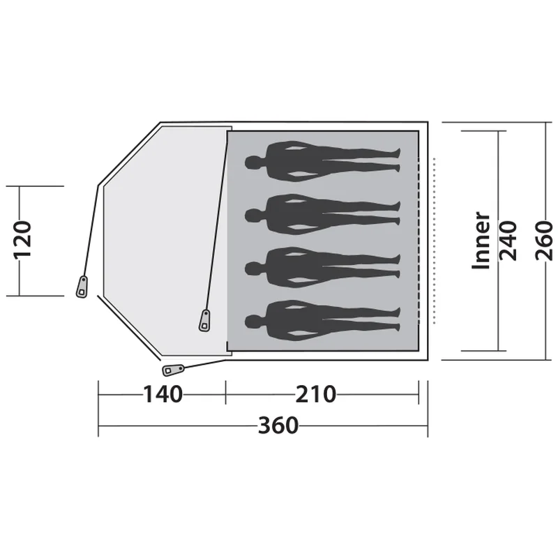 - Hydrostatic Head 2000 mm - тканина намету має поліуретанове покриття, яке забезпечує водонепроникність 2000 мм вод. ст.