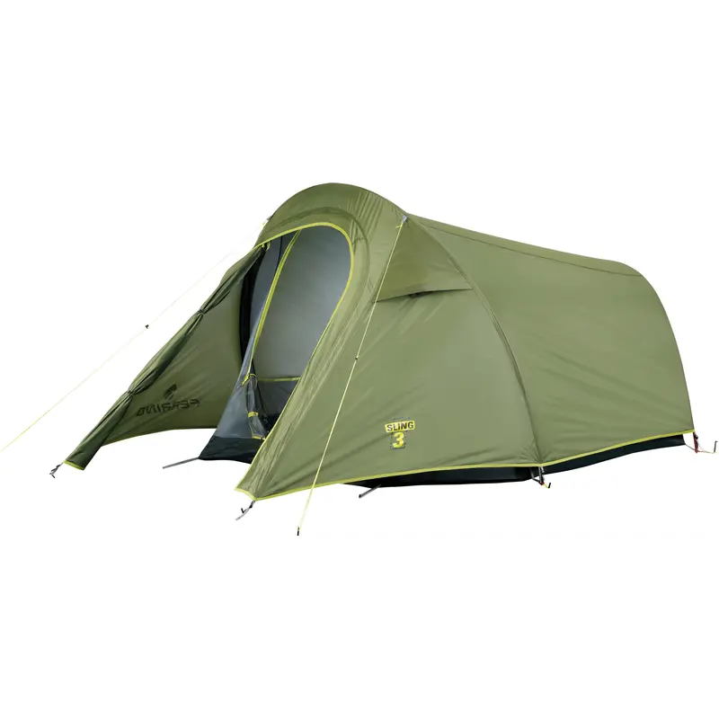 Ferrino Sling 3 Green (91036MVV) відноситься до серії трисезонних наметів Ferrino і стане знахідкою для тих, хто шукає легкий намет із достатнім внутрішнім простором, містким тамбуром та мінімальним часом встановлення. Незважаючи на те, що намет двошаровий, його вага у зборі становить менше восьмисот грамів у розрахунку на людину. Внутрішній намет повністю складається з москітної сітки, його можна використовувати окремо від зовнішнього тенту в теплі ночі. Ступінь водозахисту цілком достатній, щоб за умови правильної установки зберегти намет сухим усередині під час дощу. Ефективна система вентиляції Camera Air доповнена двома вентиляційними вікнами для запобігання утворенню конденсату. Ferrino Sling 3 Green (91036MVV) - відмінний вибір для подорожі на велосипеді або пішки.