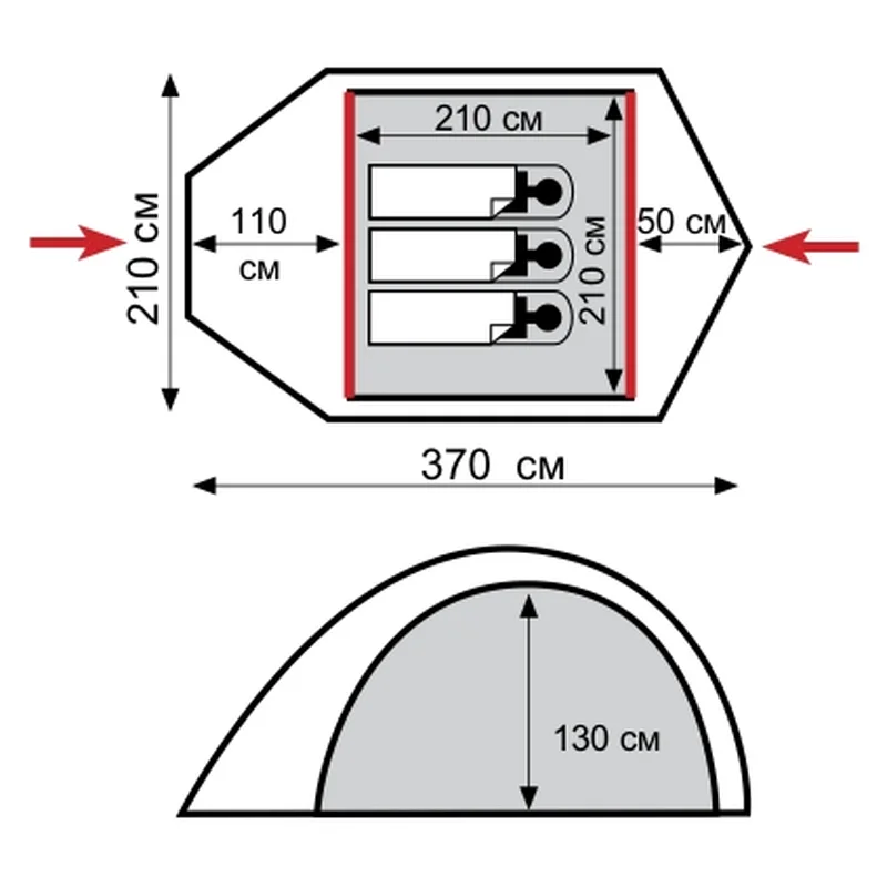 Ця тримісний намет має двошарову конструкцію, яка дозволяє краще зберігати тепло в наметі і зменшує ймовірність виникнення конденсату на внутрішній частині тенту. Завдяки цій особливості намет можна використовувати для туристичних походів у весняний, літній і осінній час. Зайти в намет можна через два входи, які продубльовані москітними сітками.