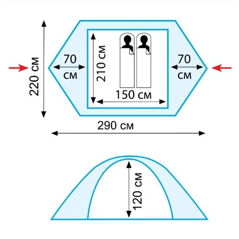 - Двошаровий намет з двома входами
