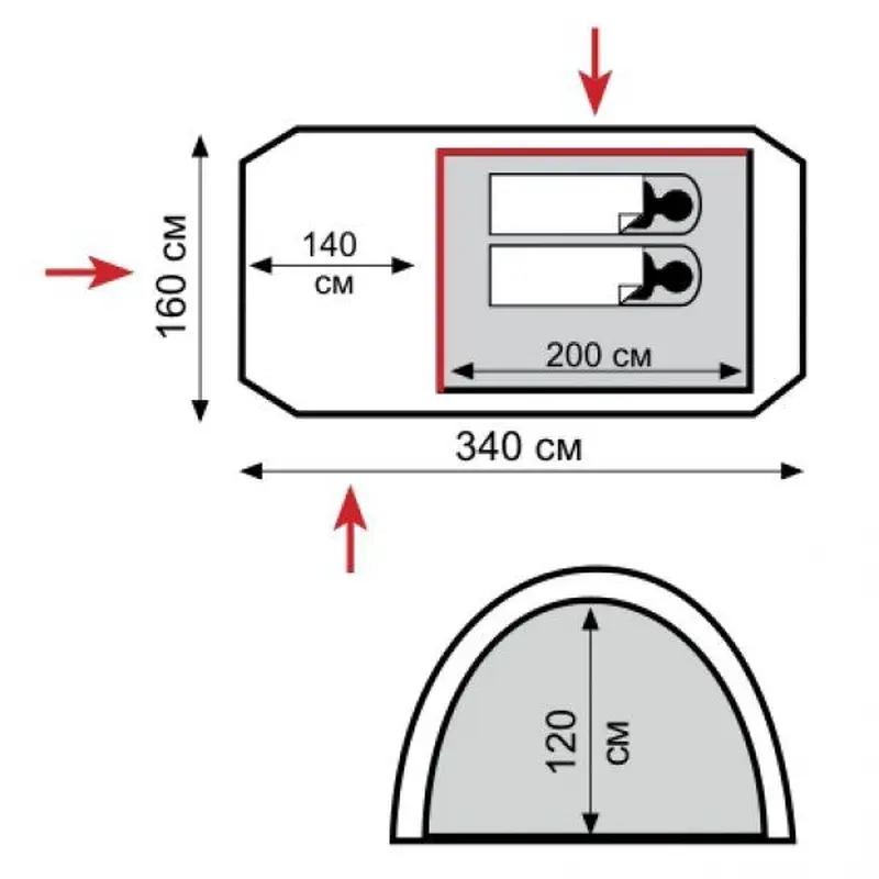 Намет Tramp Octave 2 - Двомісний намет тунельного типу з трьома входами і великим тамбуром.
