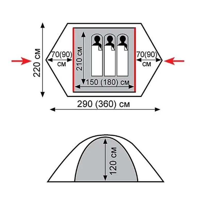 - Зовнішній тент намету стійкий до ультрафіолетового випромінювання