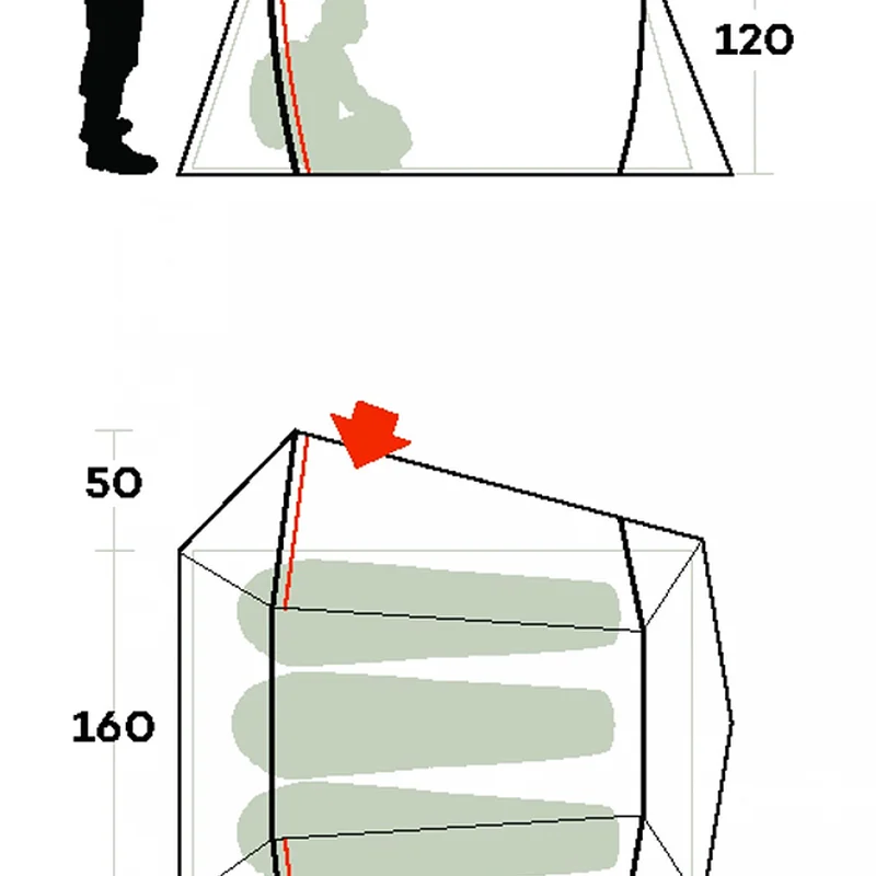- Конструкцією передбачені вентиляційні вікна, розташовані в торцях намету та з боку входів. Система вентиляції Camera Air створює велику повітряну камеру між зовнішнім тентом і внутрішнім наметом, що сприяє вільній циркуляції повітря. З одного боку це позбавляє появи конденсату всередині, а з іншого - повітря є кращим теплоізоляційним прошарком.