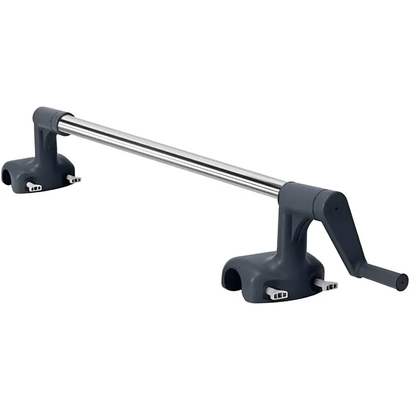Міцна алюмінієва штанга і пластикові опори забезпечують легкість конструкції та стійкість при використанні. Ручка з нержавіючої сталі з фіксатором запобігає самовільному розмотуванню.