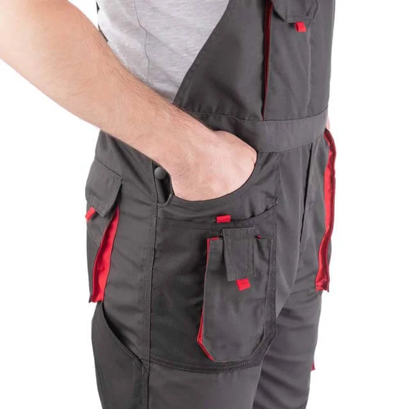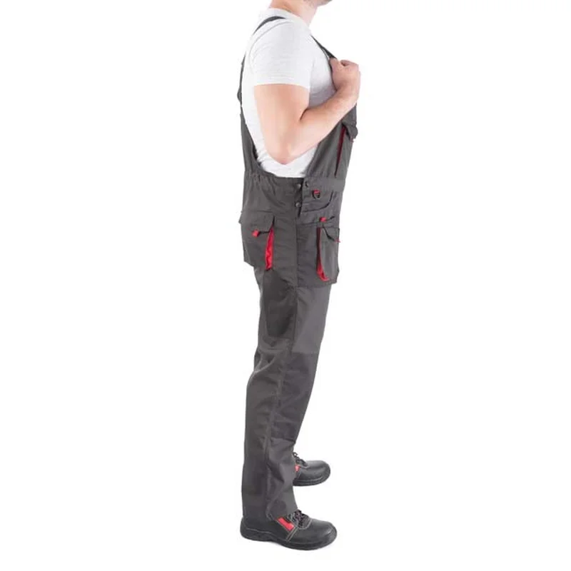 Напівкомбінезон пошитий з того ж міцного і зносостійкого матеріалу, що й куртка з брюками: 80% поліестер, 20% бавовна зі щільністю 260 г/м². Відмінно захищає робітника від забруднень і механічних пошкоджень. Велика кількість накладних і прорізних кишень дозволяють розвантажити руки майстра і виконувати роботу зі зручністю і швидким доступом до всіх інструментів.
