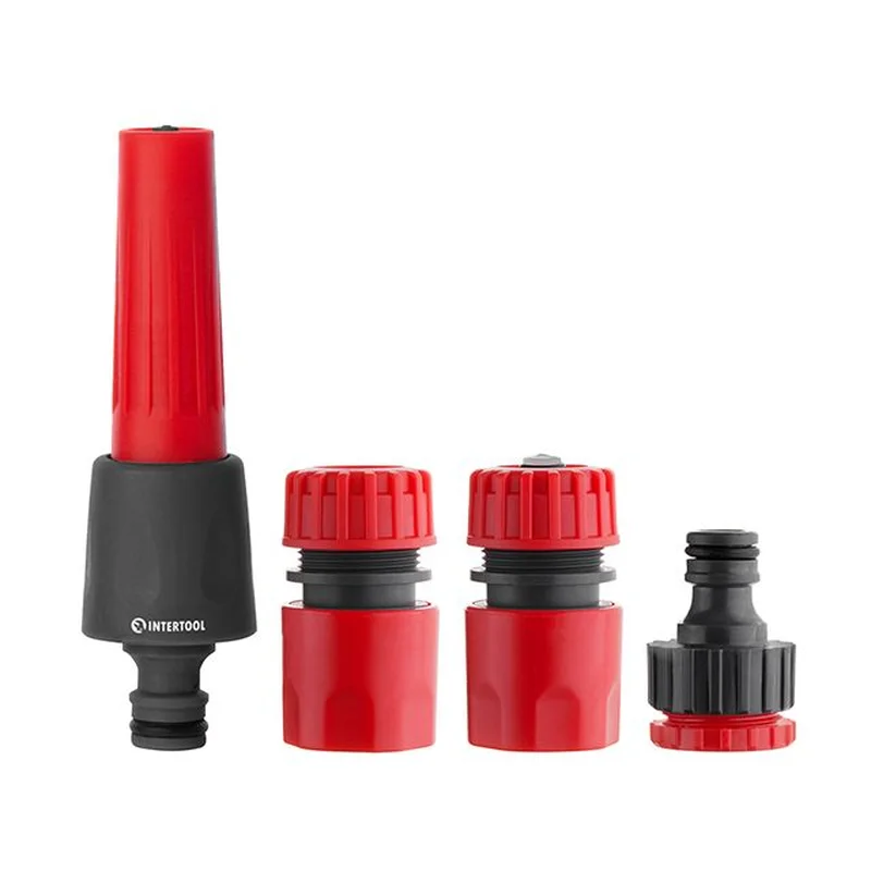 Насадка для поливу з плавним регулюванням потоку води для конектора 1/2" + адаптер універс. для конектора 1/2" з внутрішньою різьбою 1/2" / 3/4", конектор 1/2" на шланг 1/2", конектор з аквастопом 1/2" на шланг 1/2"