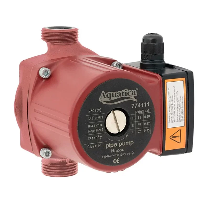 Насос циркуляційний 100Вт Hmax 6м Qmax 75л/хв Ø1" 130мм+гайки Ø¾" AQUATICA (774131)