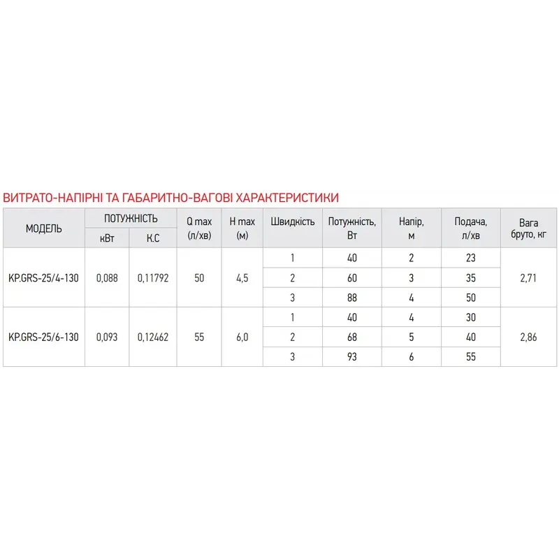 Насос циркуляційний відцентр. KOER KP.GRS-25 / 6-130 (KP0251)