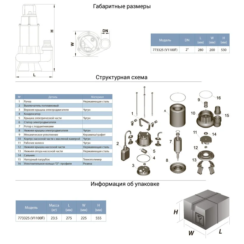 Насос дренажний 1.1кВт Hmax 9м Qmx 333л / хв AQUATICA (773325)