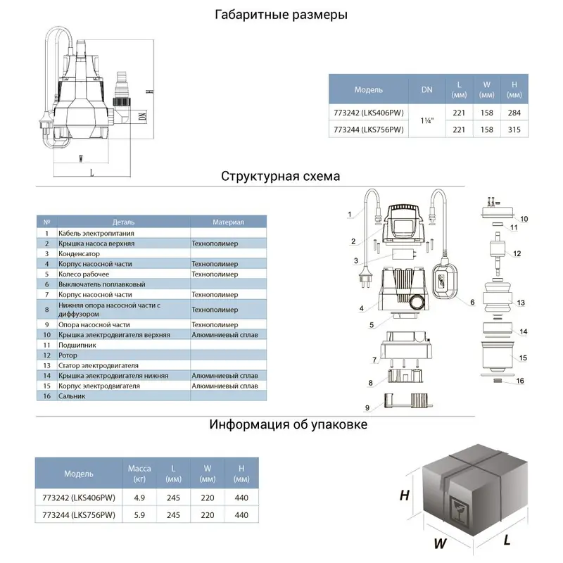 - Поплавковий вимикач забезпечує автоматичне включення і виключення насосів даної серії в залежності від рівня води.