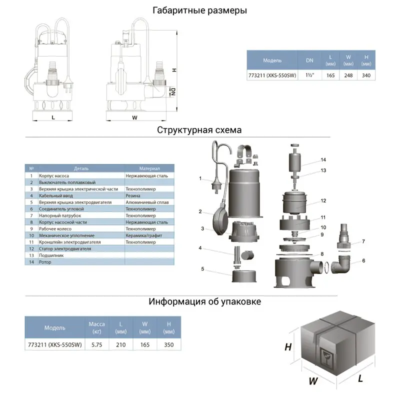 - Поплавковий вимикач забезпечує автоматичне включення і виключення насосів даної серії в залежності від рівня води.
