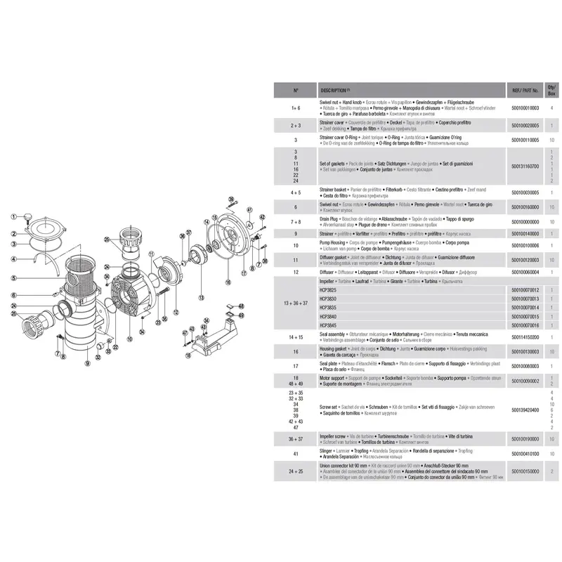 Самовсмоктуючий відцентровий насос Hayward HCP38353E1 з префільтром для комерційних басейнів. Використовується для фільтрації і циркуляції води. Лінійка HCP була розроблена компанією Hayward як надійна альтернатива важким чавунним і бронзовим насосам для комерційного застосування. Виготовлені з легкого міцного термопластика, збагаченого скловолокном. Гідравлічні вузли з Noryl дозволяють використовувати насоси з солоною і морською водою. Обладнаний префільтром великої місткості. Прозора кришка префільтра на 4-х легковідкидних гвинтах з нержавійки. В насосі використовується високопотужний охолоджуючий мотор TEFC. Призначений для обслуговування басейнів об'ємом до 232000 літрів. Продуктивність: 58 м³/год Потужність: 3.7 кВт З'єднання: 90 мм