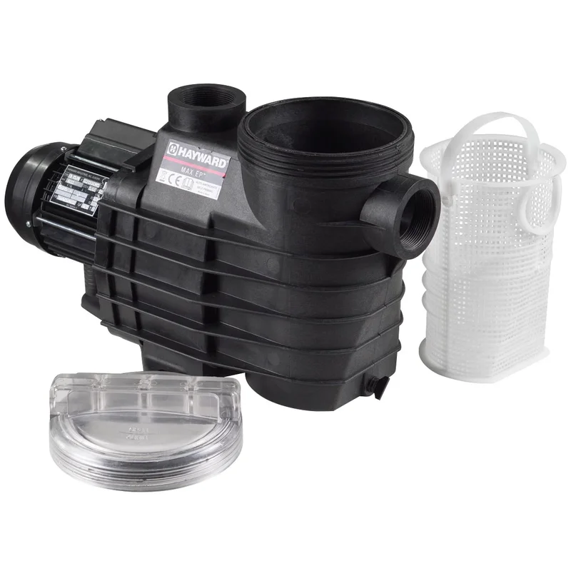 Насос Hayward SP2505XE81 EP 50 - це ідеальний варіант для циркуляції і фільтрації води в приватних і комерційних басейнах об'ємом до 30 000 л. Корпус насоса виготовлений з термопластика посиленого скловолоконном. Крильчатка виконана з норіла, оснащена втулкою з нержавіючої сталі. Насос обладнаний вбудованим префільтром з прозорою кришкою з полікарбонату на різьбовому кріпленні. Знімна пластикова корзина виконана з білого пластику. При монтажі насоса потрібна додаткова установка автомата захисту двигуна. Продуктивність: 7,5 м³/год Вхідна потужність: 0.58 кВт З'єднання: 2" ВР